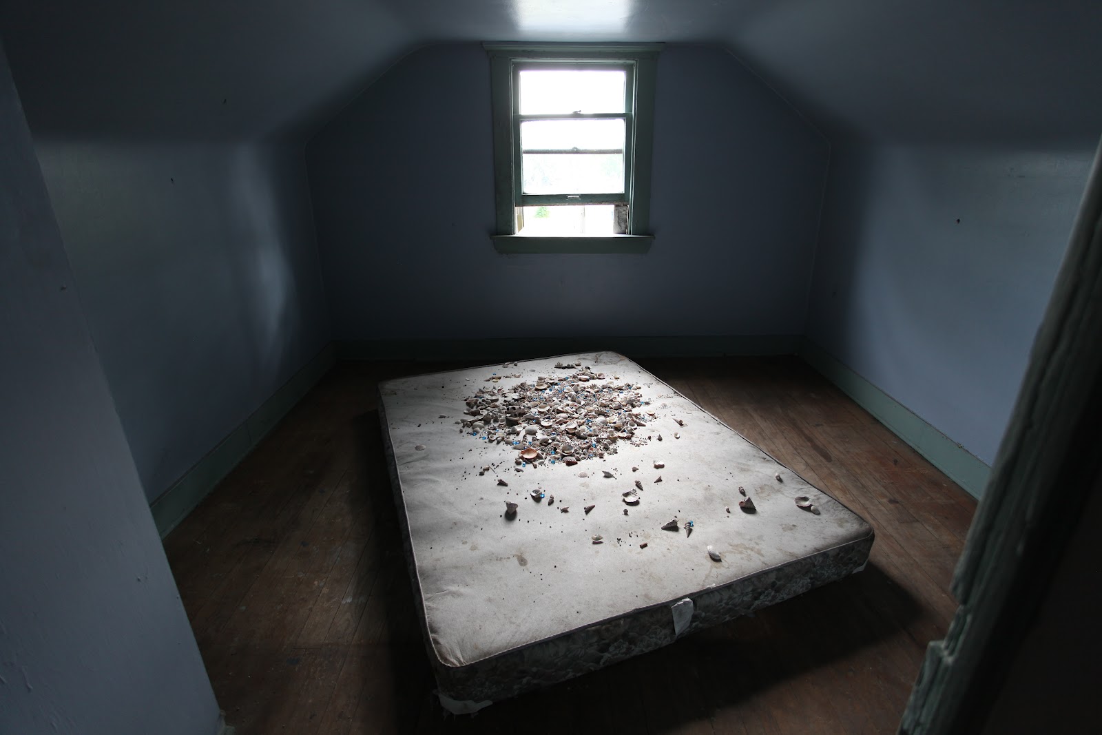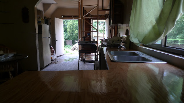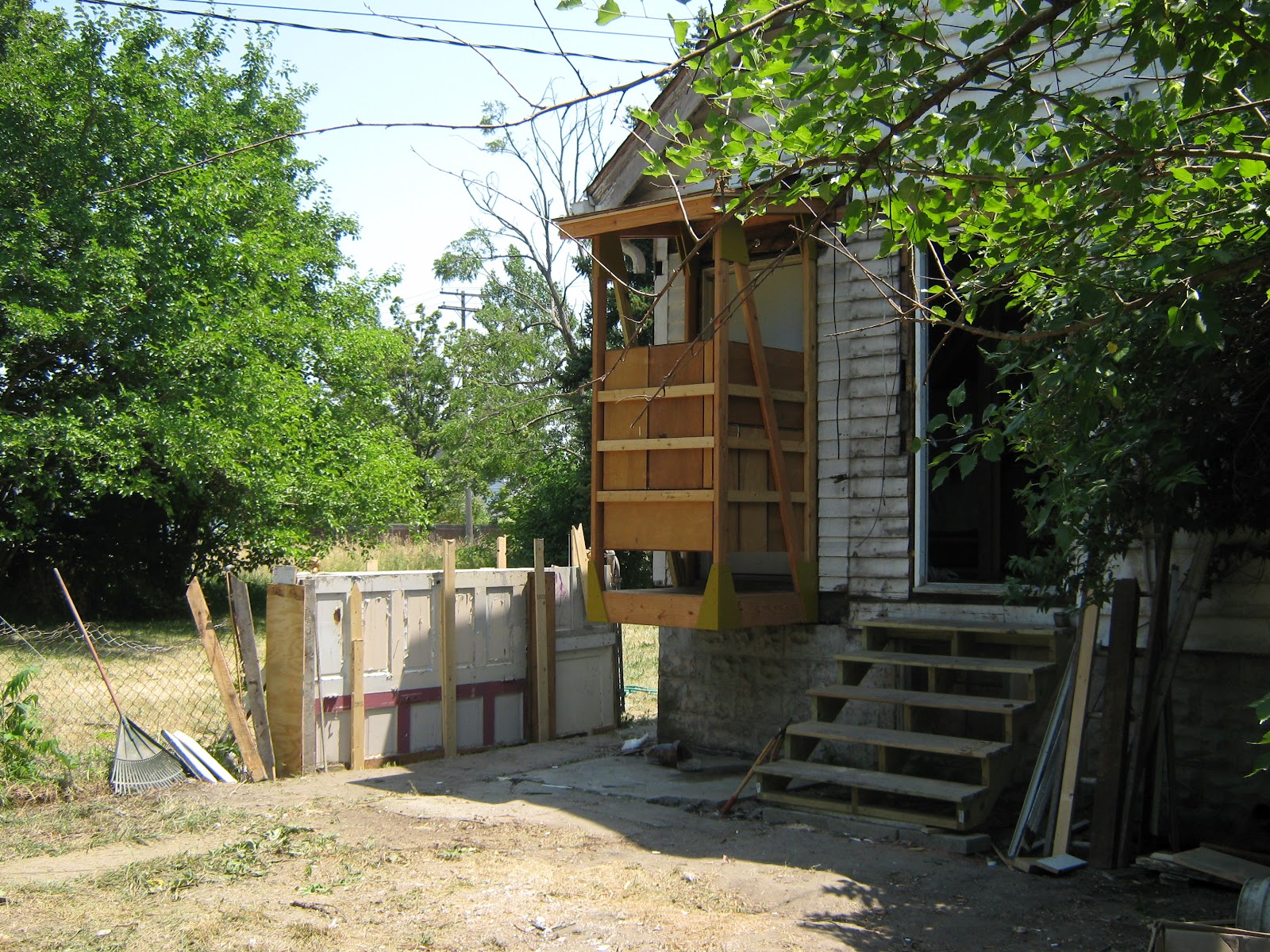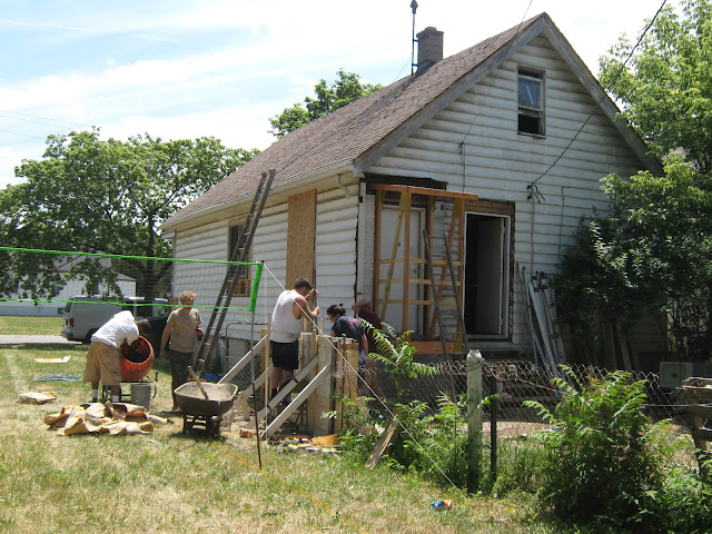 Artist Michael Bizon and Christian Tedeschi arrived to Detroit from LA in early June for their month long expedition of the Northwest Territories( 2 satellite spaces across the street from Popps). It's hard to put into words the work they accomplished, but lets just say they "kicked Ass!" Cleaning,reorganizing, pealing away sufaces.... ultimately transforming the crazy cluttered storefront and attached house into a thoughtful intricate web of interventions and installations.